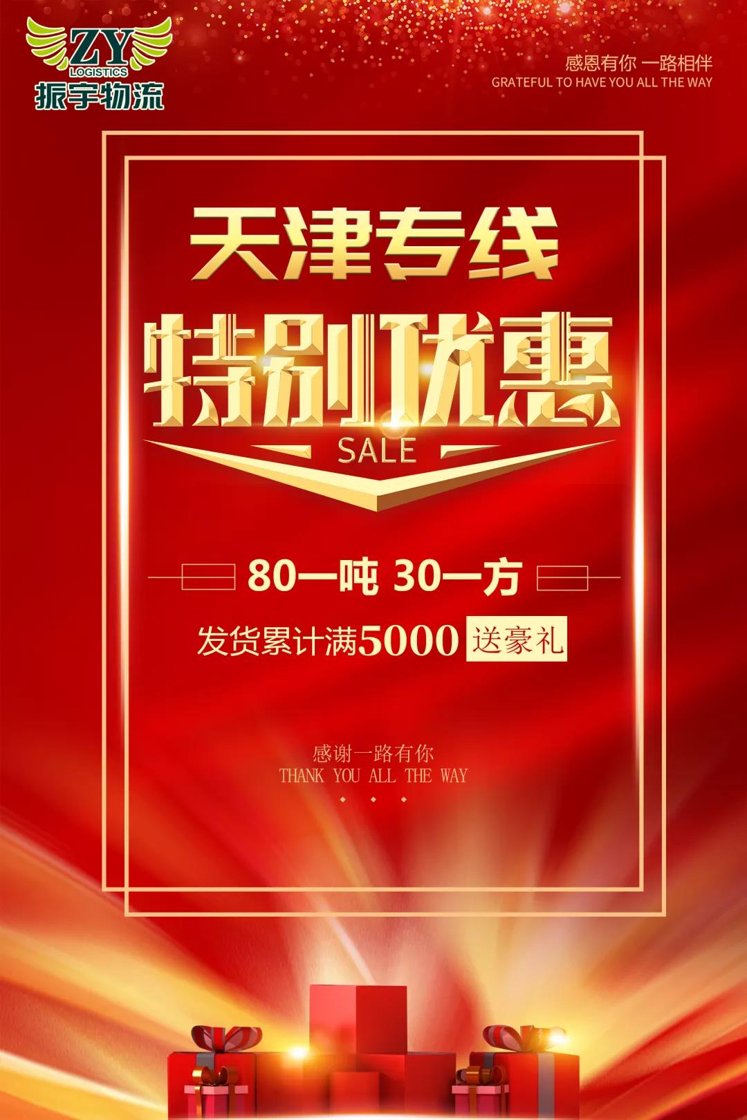 振宇物流天津?qū)>€大優(yōu)惠,驚喜豪禮送送送!