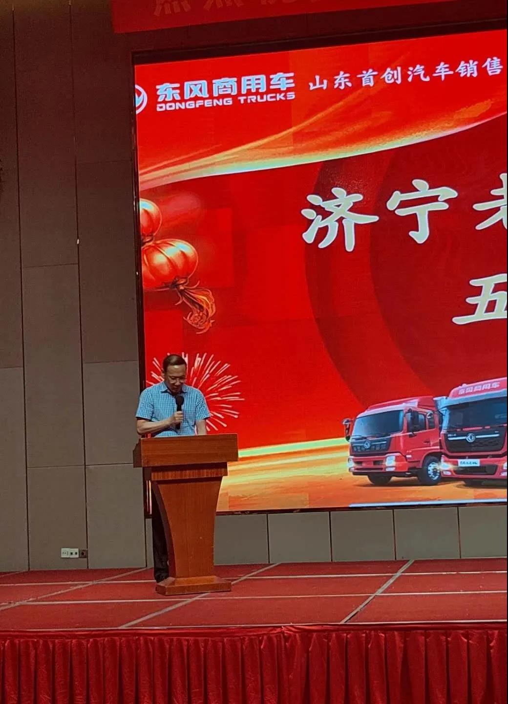 慶典上,濟(jì)南市濟(jì)寧商會(huì)副會(huì)長(zhǎng)朱濱、東風(fēng)商用車負(fù)責(zé)人分別上臺(tái)講話,表達(dá)了對(duì)協(xié)會(huì)工作的肯定和未來(lái)的美好祝福。