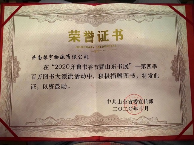 振宇物流此次積極主動參與“2020年齊魯書香節(jié)暨山東書展-第四季百萬圖書大漂流”活動,只為讓每一位鄉(xiāng)村孩子都能讀上一本完好的書,努力承擔(dān)書籍裝卸及運輸,將這些書籍送往東明縣沙窩鎮(zhèn)姜屯小學(xué)。