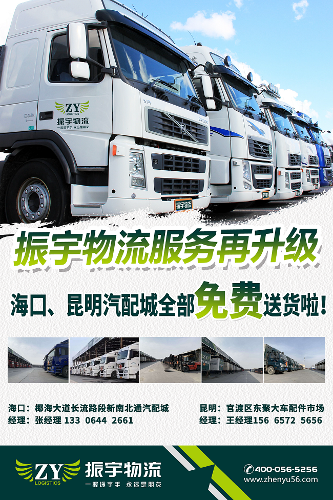 振宇物流服務(wù)再升級(jí)!海口、昆明汽配城全部免費(fèi)送貨啦!