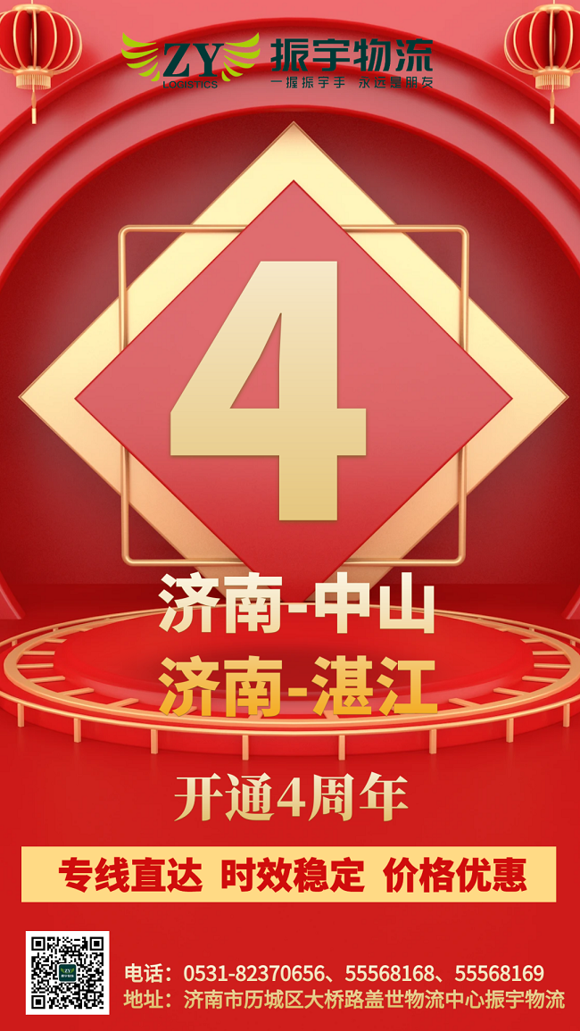 振宇物流集團(tuán)丨濟(jì)南-中山、湛江直達(dá)專(zhuān)線(xiàn)開(kāi)通四周年,線(xiàn)路發(fā)貨優(yōu)惠中……