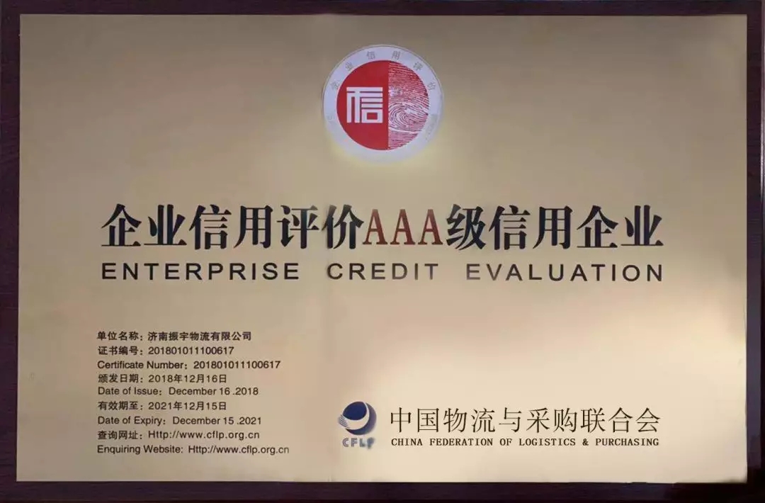 濟南振宇物流有限公司:國家3A級信用企業(yè)