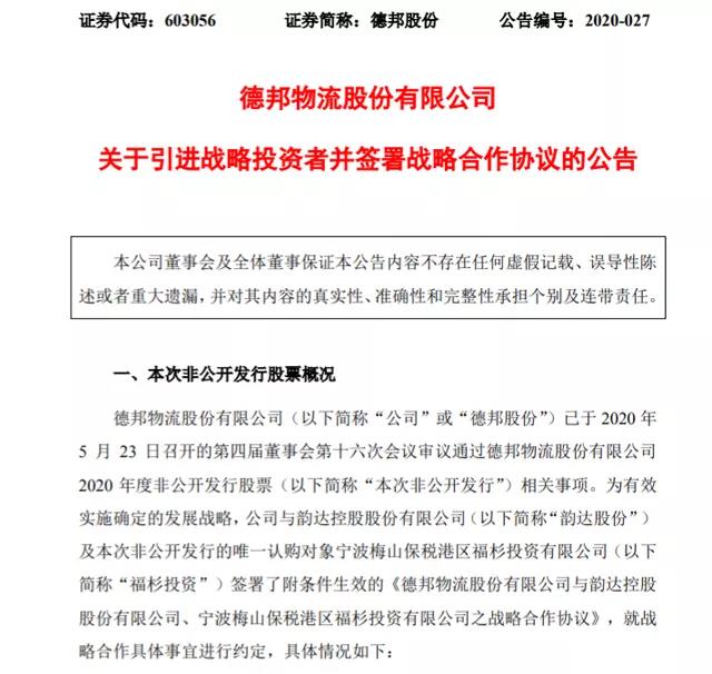 濟南物流公司:韻達戰(zhàn)略投資德邦,占股約6.5%,快遞投資并購好戲開始?