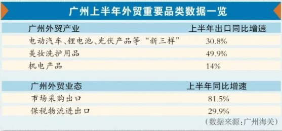 今年上半年,廣州外貿(mào)交出歷史性答卷——進出口總額6050.5億元,同比(下同)增長15.5%,對全國、廣東外貿(mào)增長貢獻率分別達13.1%和46.7%;出口總額3969.1億元,激增25.2%;在連續(xù)13個月增長的曲線中,廣州外貿(mào)規(guī)模已經(jīng)連續(xù)兩個季度保持10%以上的增長,二季度出口更是創(chuàng)下季度歷史最高值。